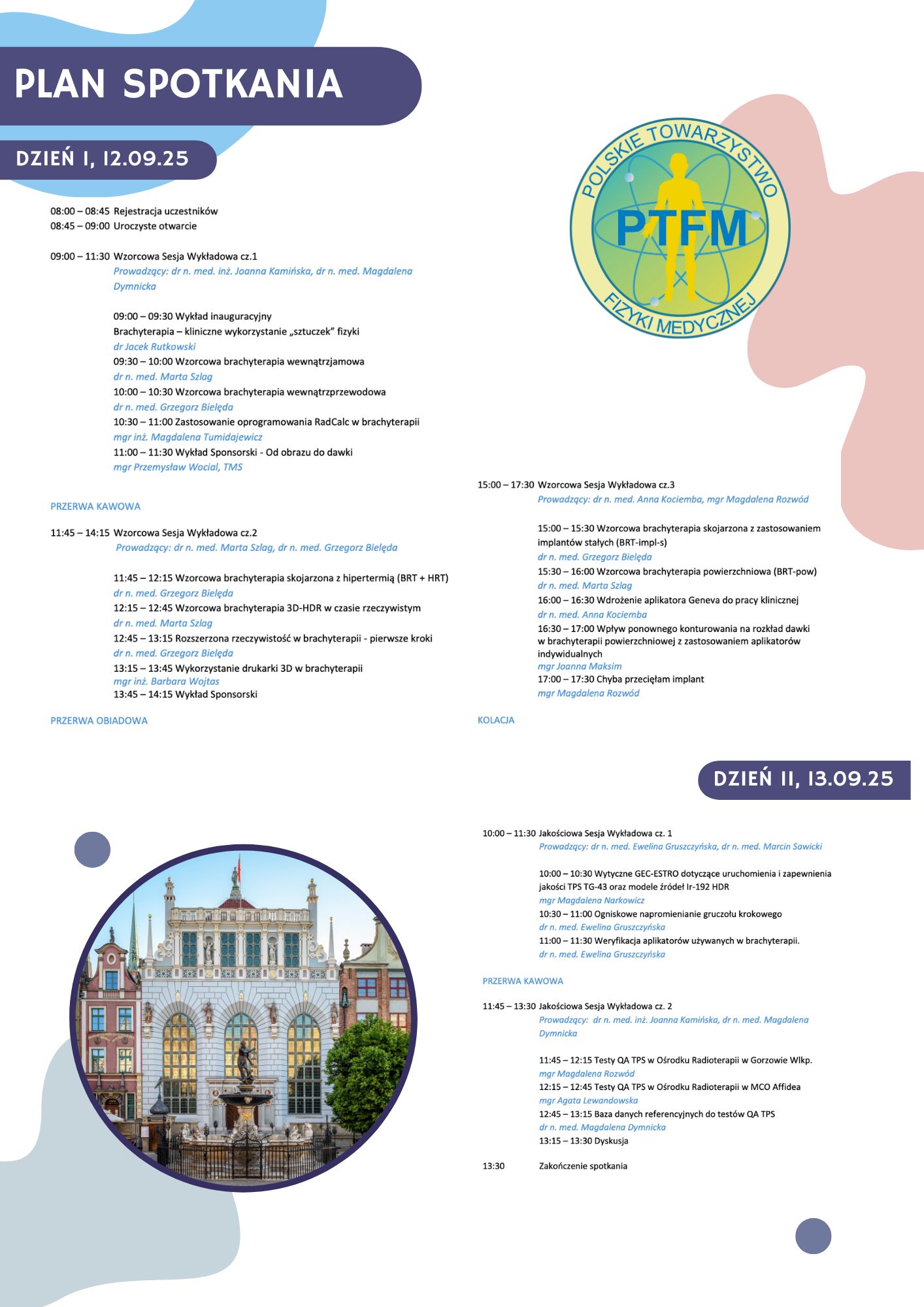 Organizatorem Spotkania jest Sekcja Brachyterapii Polskiego Towarzystwa Fizyki Medycznej, a jego Gospodarzami Pracownia Fizyki Medycznej Uniwersyteckiego Centrum Klinicznego w Gdańsku. Tegoroczna edycja Spotkania poświęcona będzie nowym Procedurom Wzorcowymw zakresie brachyterapii, które zaprezentują i omówią ich redaktorzy dr n. med. Marta Szlag i dr n med. Grzegorz Bielęda. Wrócimy także do testów kontroli jakości systemów planowania leczenia. Ciekawi jesteśmy jak w praktyce przebiega praca z wydanymi w tym roku zaleceniami PTFM. Zapraszamy uczestników do podzielenia się wynikami swoich testów i uwagami do ich przeprowadzania, dzięki czemu będzie mogła powstać planowana baza wartości referencyjnych.